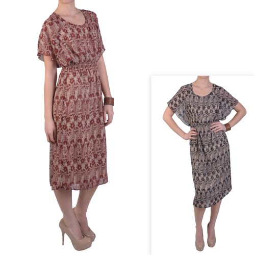 Chiffon fabric and abstract cheetah print design highlight this short sleeve dress by Hailey Jeans Co. This piece features an open back and empire waistline for a flattering look. Completed by a scoop neckline, this flowing style provides a modish addition to your wardrobe.