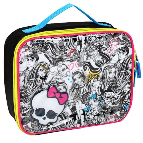 This Monster High “Monster High Character Collage” insulated lunchbox is a fun and stylish way to make school lunches fun. This Monster High “Monster High Character Collage” lunch bag offers children an easy way to tote along their favorite meals and snacks. Lunch box features a black, hot pink, lime green and blue exterior with a cute image of Ghoulia Yelps, Draculaura, Frankie Stein, Cleo De Nile, Lagoona Blue, Clawdeen Wolf, Spectra Vondergeist Jackson Jekyll, Holt Hyde and Deuce Gorgon! The perfect back to school choice for any Monster High fan!.